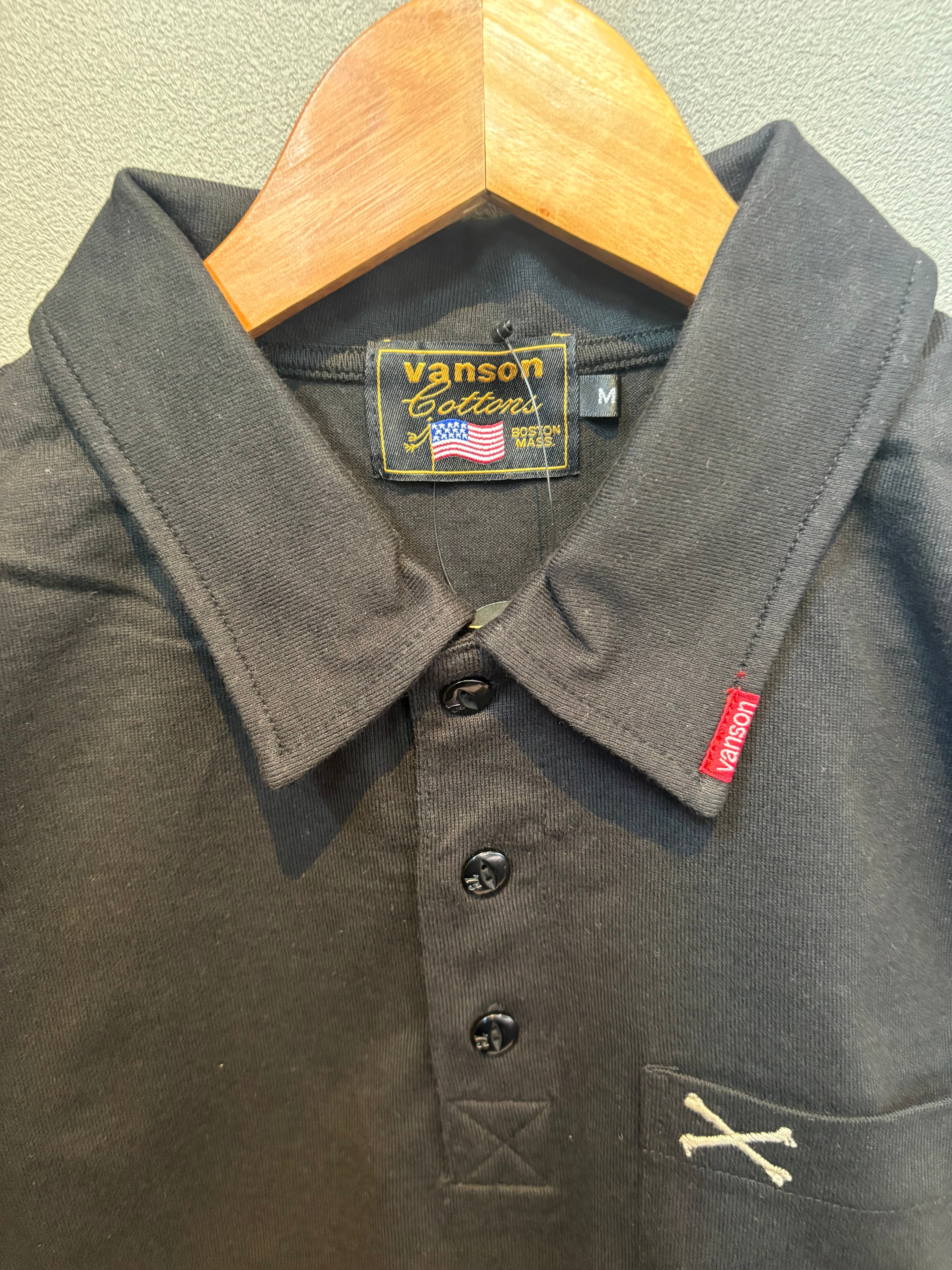 VANSON/バンソン ポロシャツ Mサイズ NVPS-809 クロスボーン ワンポイント刺繍 天竺生地 半袖ポロシャツ ブラック