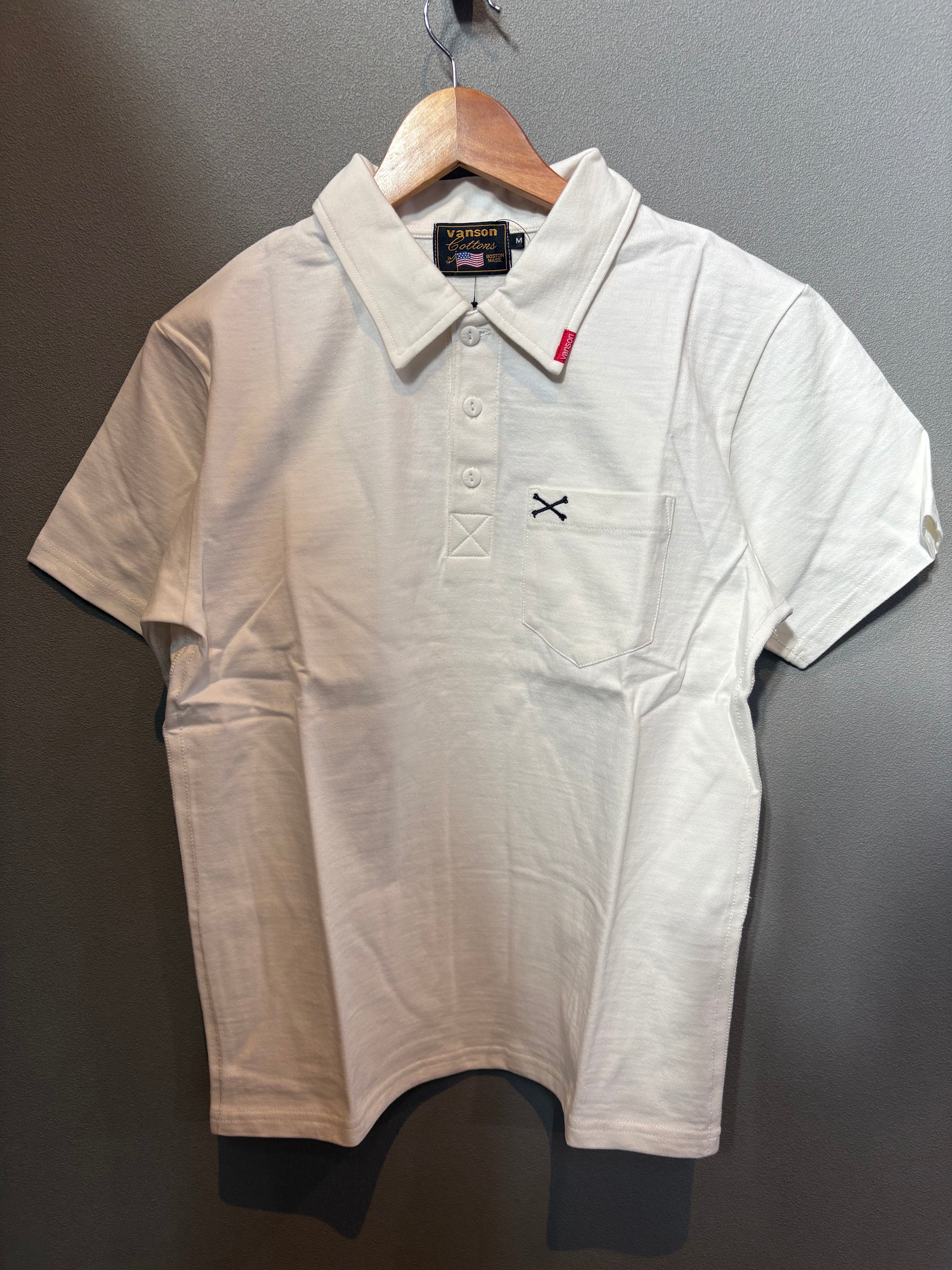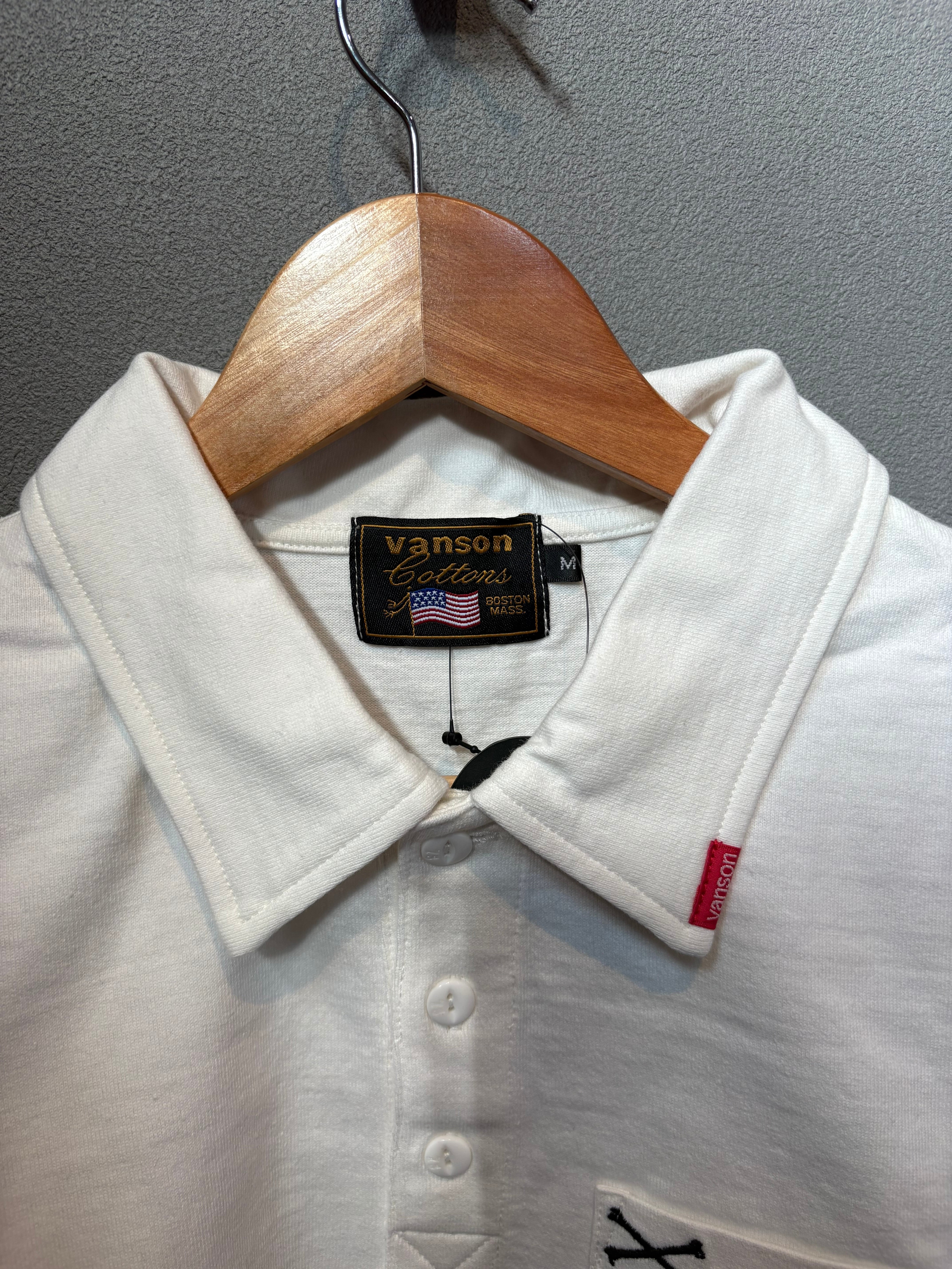 VANSON/バンソン ポロシャツ Mサイズ NVPS-809 クロスボーン ワンポイント刺繍 天竺生地 半袖ポロシャツ ホワイト