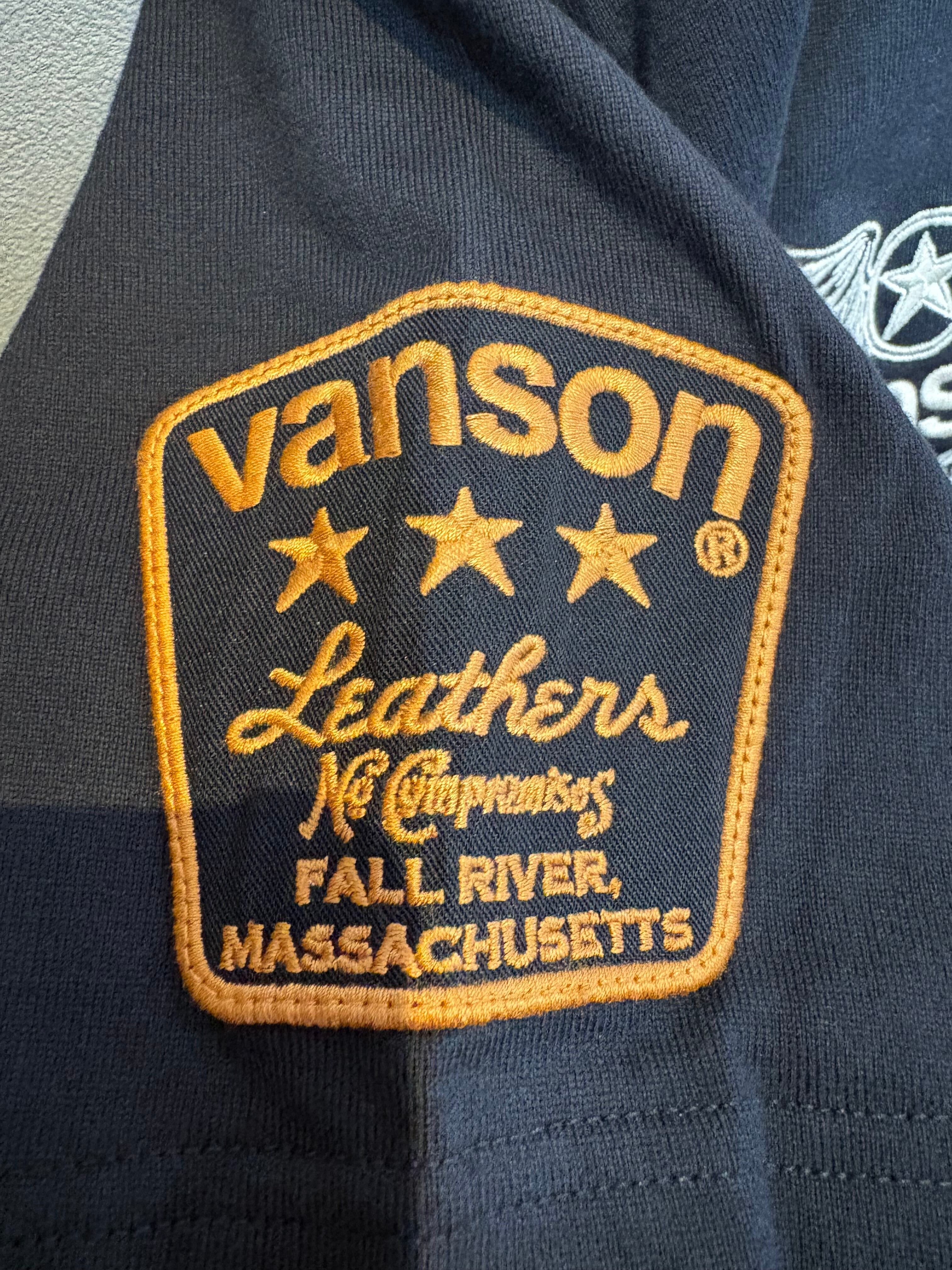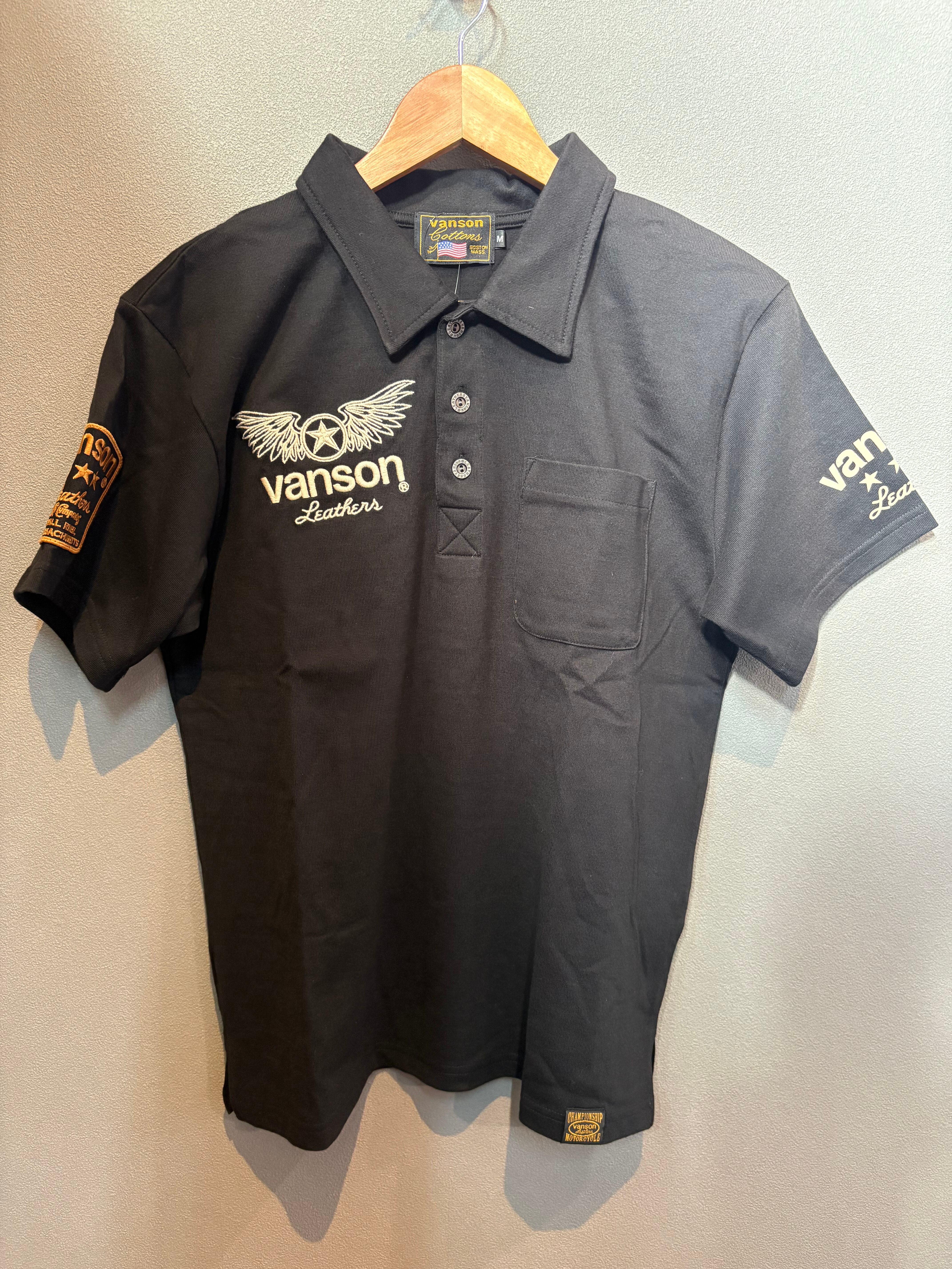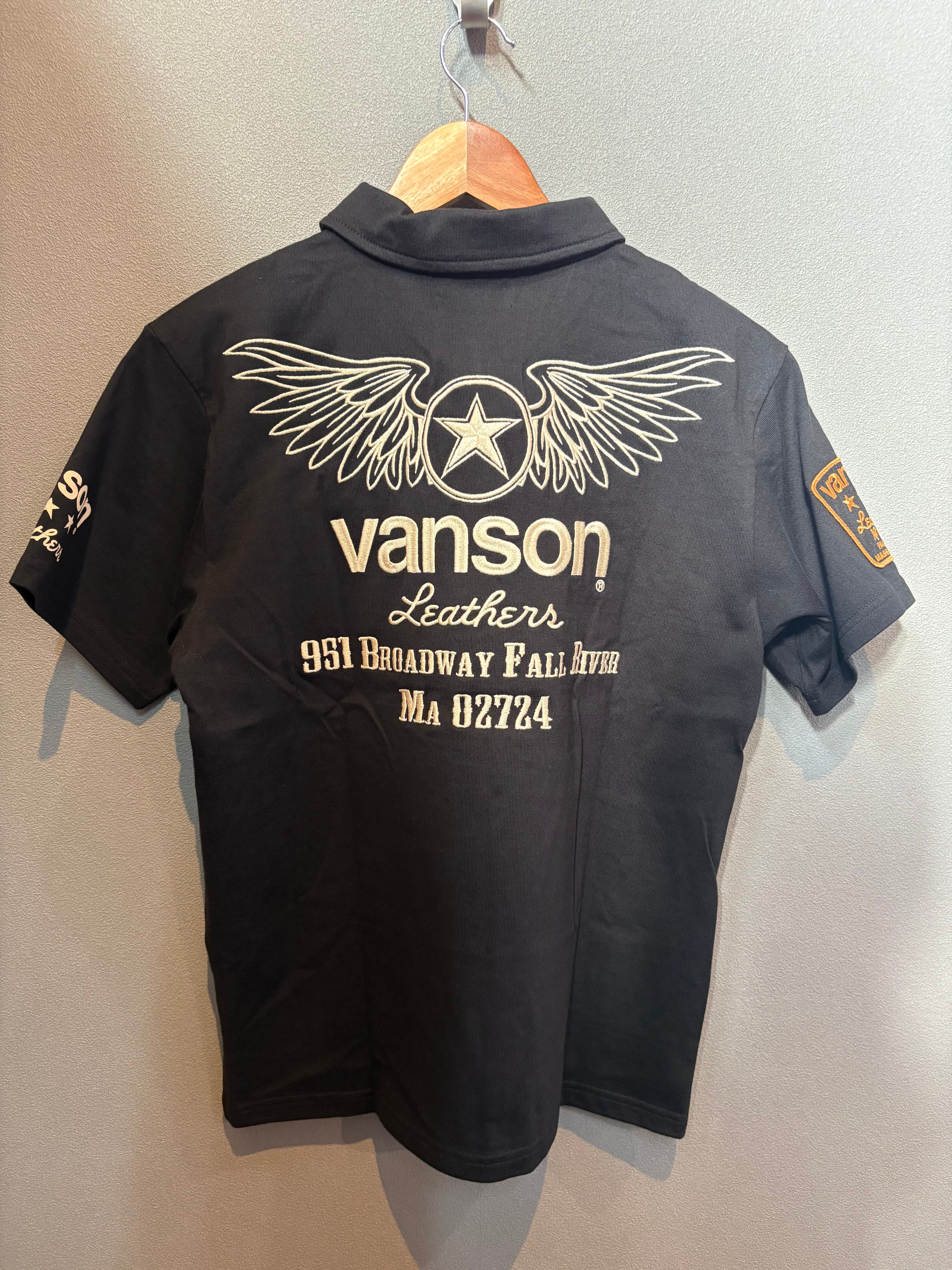 VANSON バンソン ウィングスター 刺繍 天竺 半袖 ポロシャツ Mサイズ NVPS-2201 ブラック