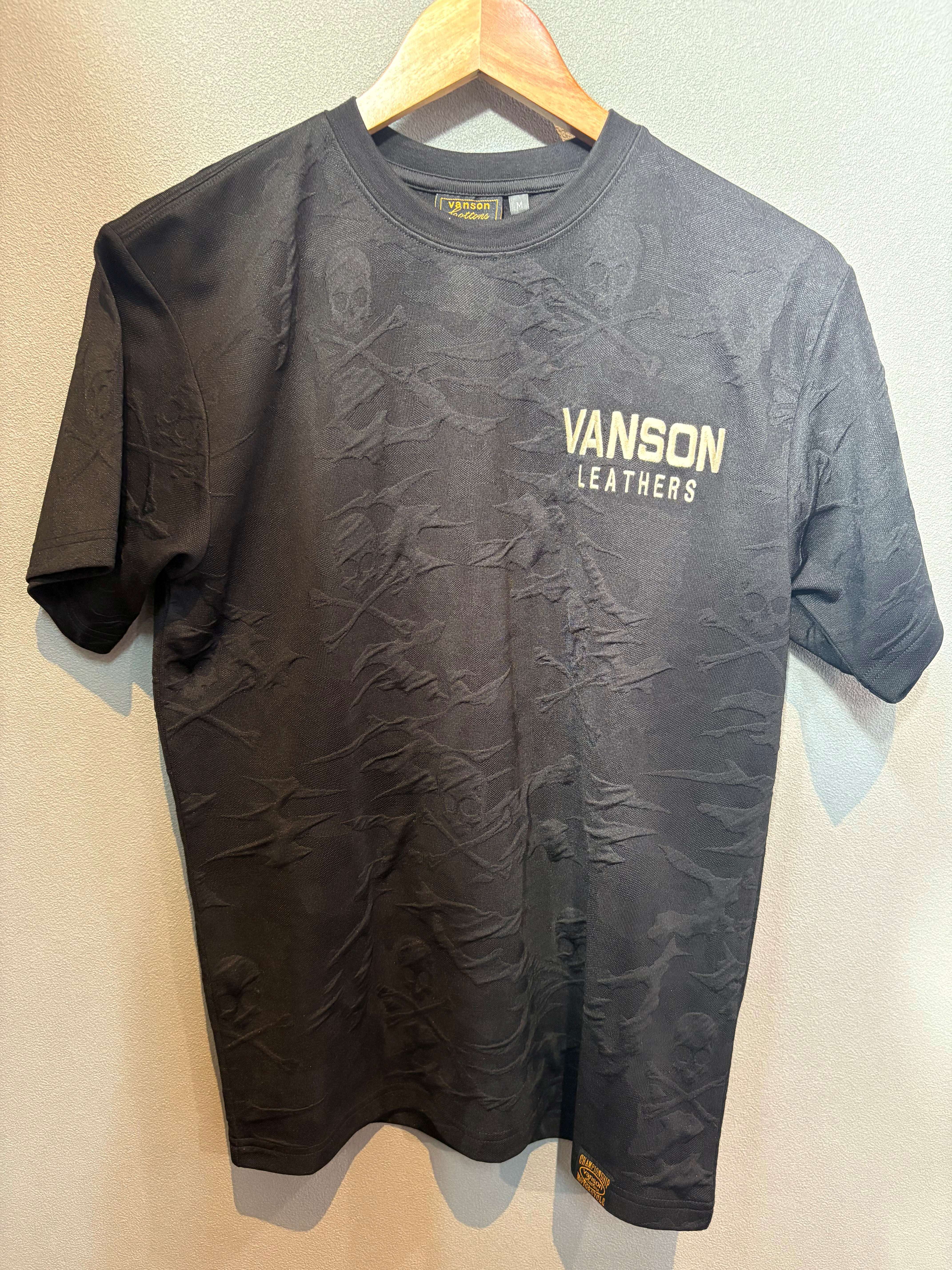 VANSON 半袖Tシャツ Mサイズ NVST-2201 ロゴ刺繍 吸汗速乾 抗菌防臭 UVカット 膨れジャガード クルーネックTシャツ ブラック迷彩