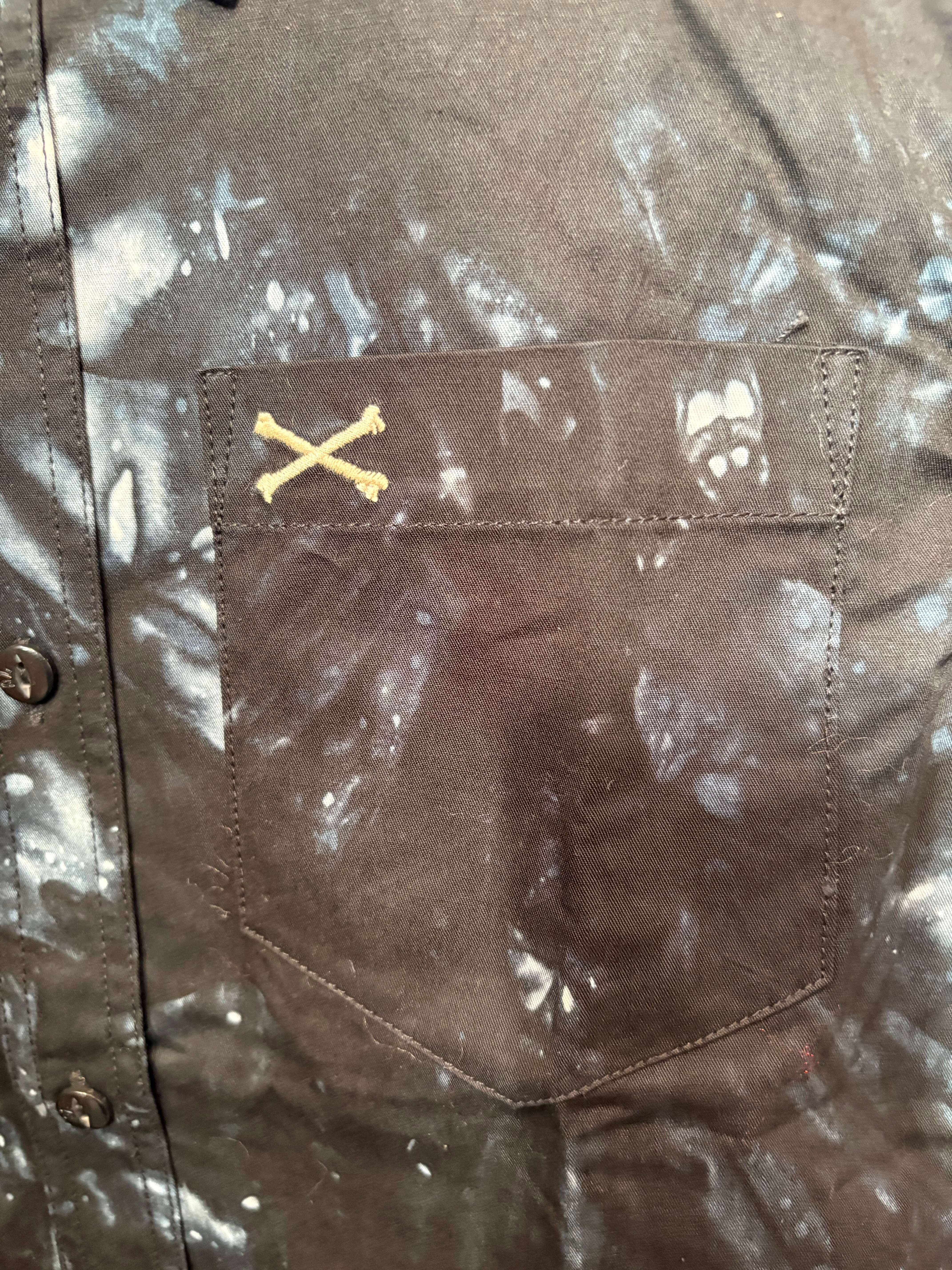 VANSON 半袖ワンポイントツイルシャツ M・Lサイズ NVSS-807 TIE DYE ロゴ刺繍 ブラック ブルー タイダイ クロスボーン