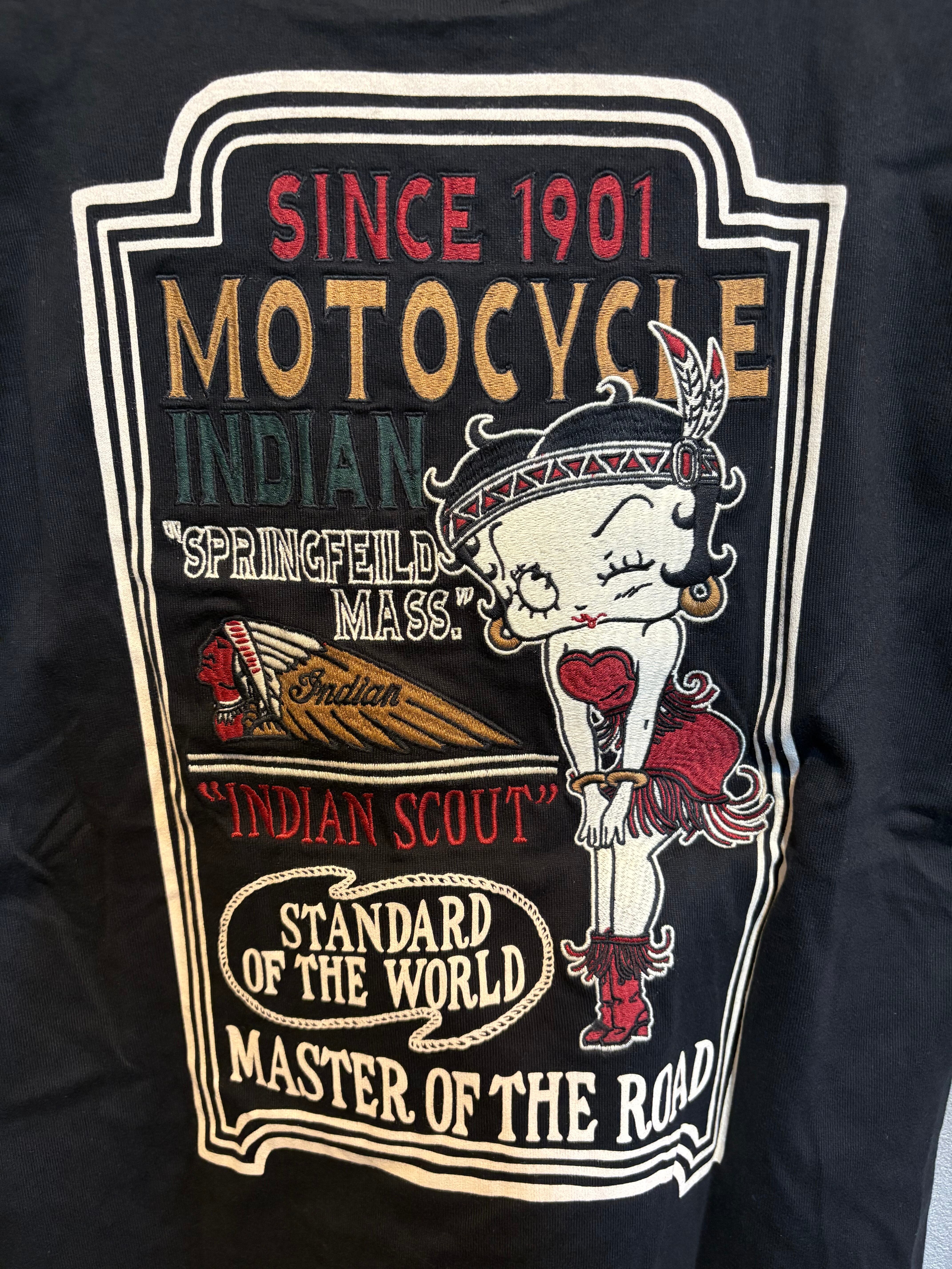 【日焼けあり値下げ】indian motocycle インディアンモトサイクル betty boop ベティブープ 刺繍 天竺Tシャツ BBI-915 ブラック Mサイズ
