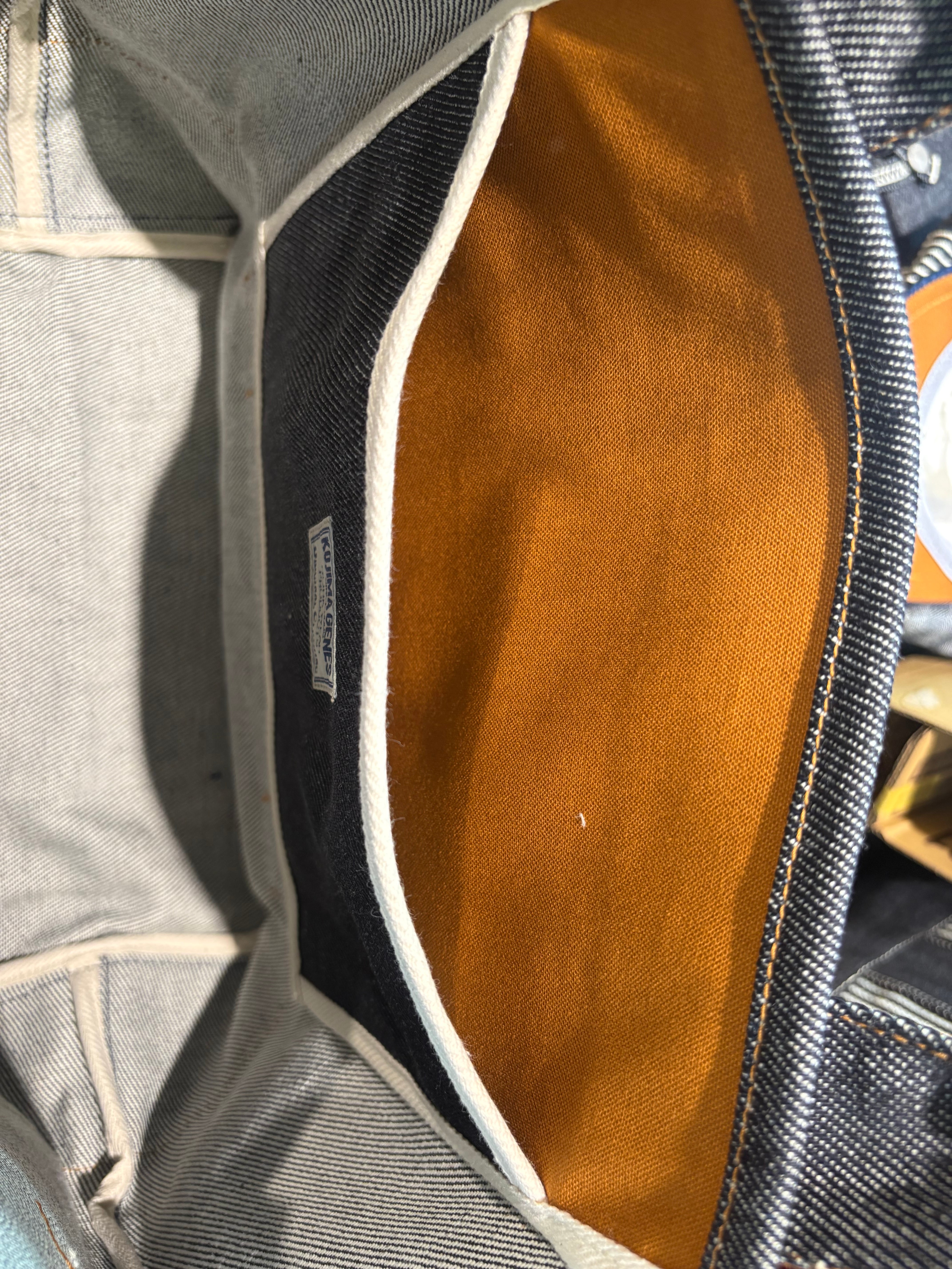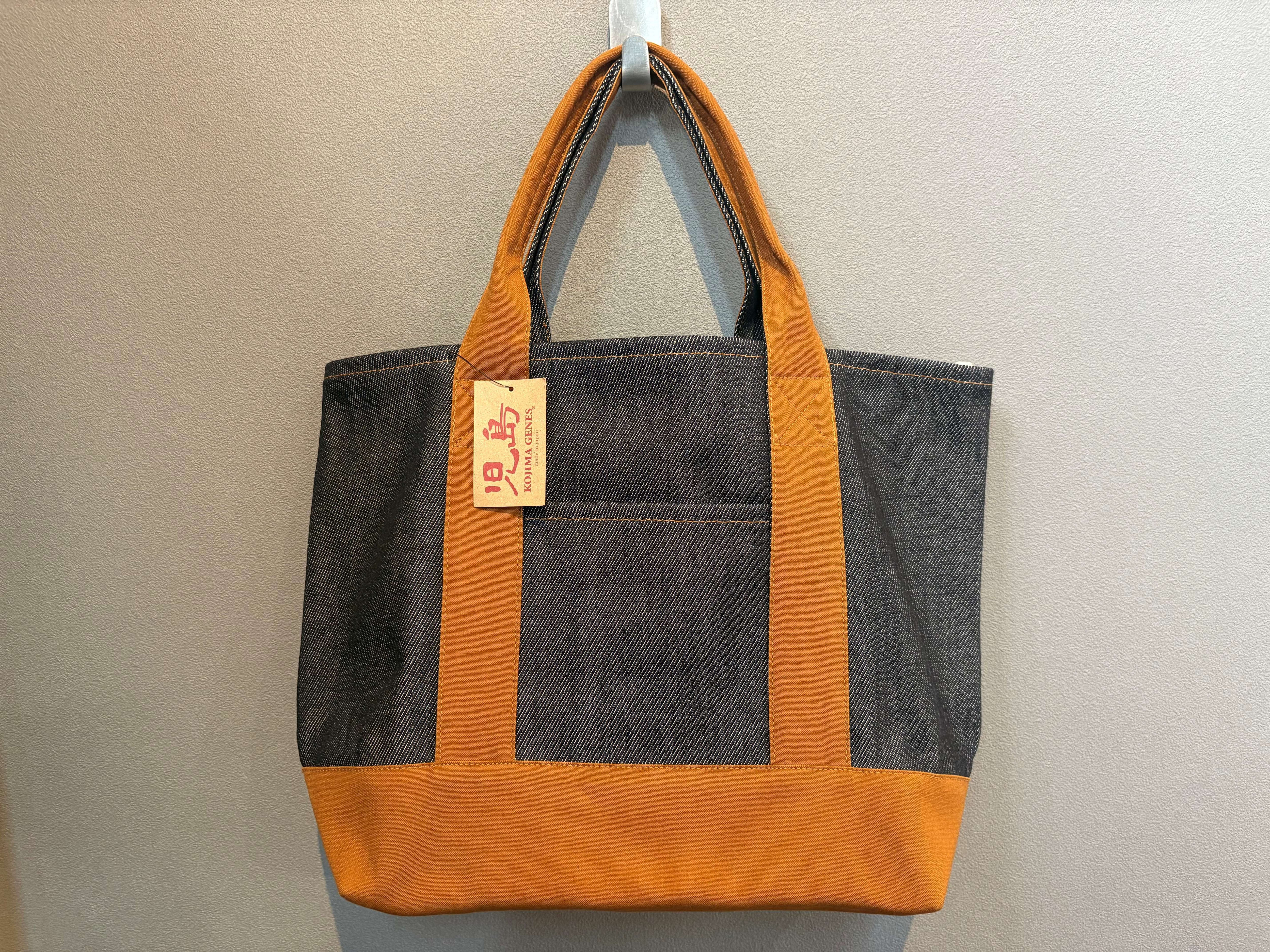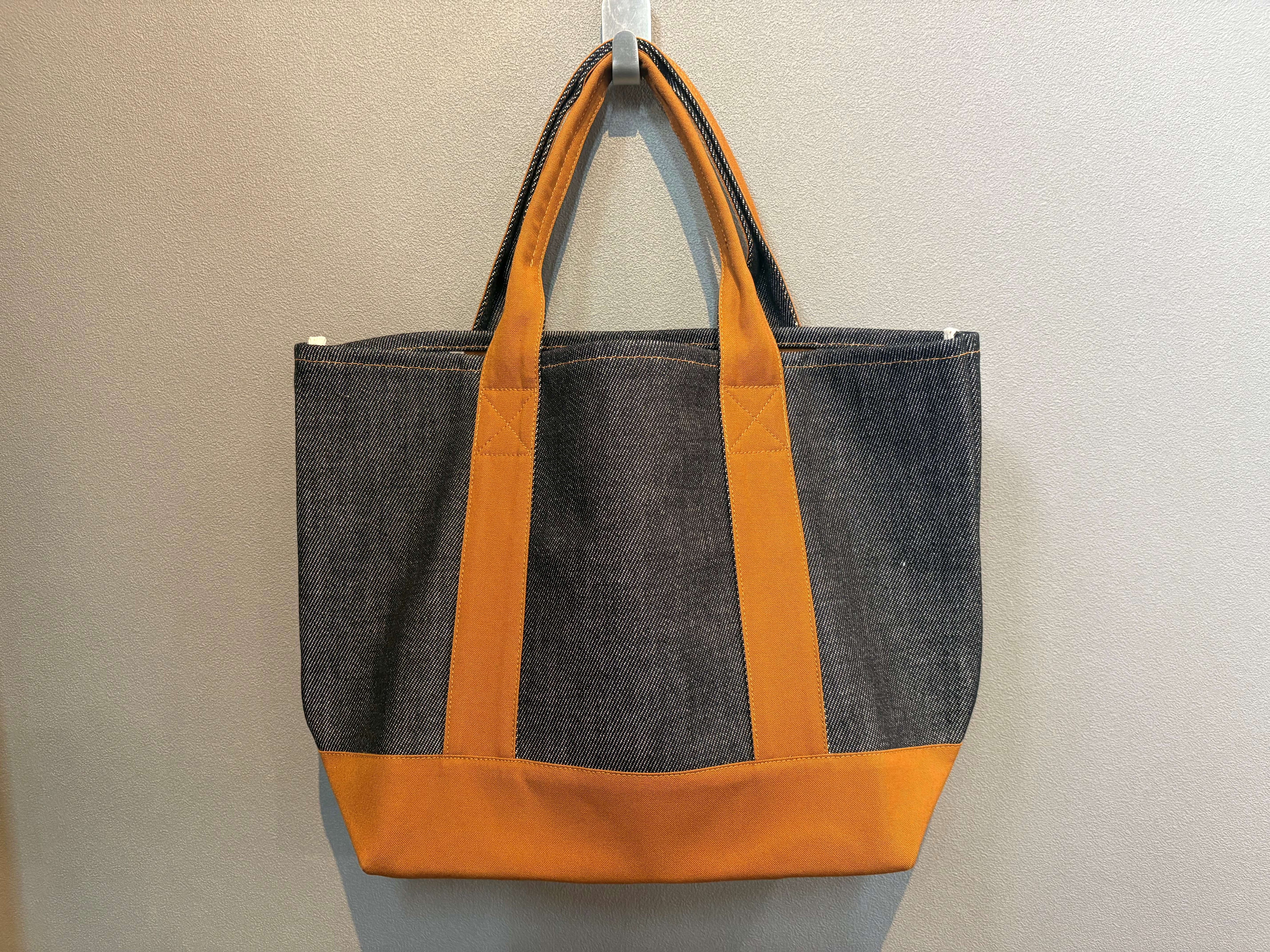 21ozヒッコリーデニムをベースにインディゴデニムで切り替えた、小ぶりなサイズ感のシンプルなトートバッグ。